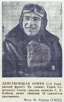 Отважно вел бой лейтенант Коблов. Он атаковал четырехмоторный бомбардировщик. Фашистский самолет был подбит и стремительно пошел вниз».