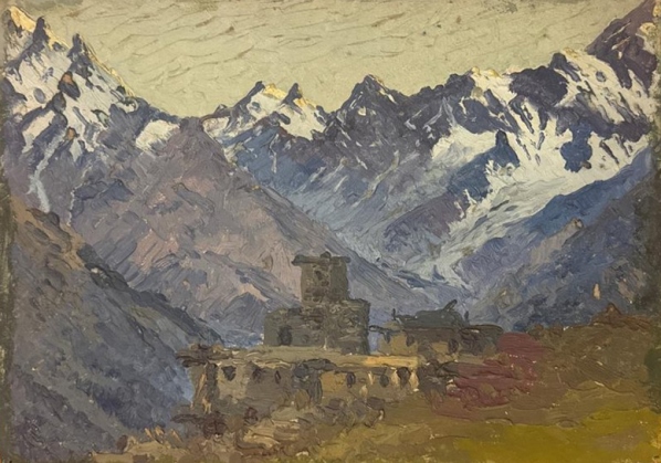 Иван ЩЕБЛЫКИН. Аул Верхний Цей. 1924. Картон, масло. Национальный музей Республики Северная Осетия-Алания.