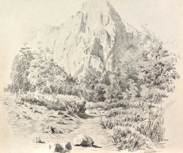 Василий ГЛУШКОВ. Цей. Гора Монах. Конец 40-х. Бумага, карандаш. Художественный музей им. М.Туганова.
