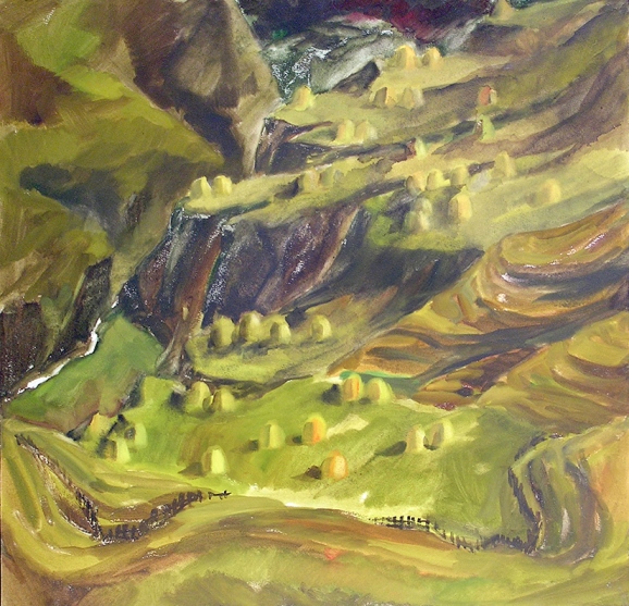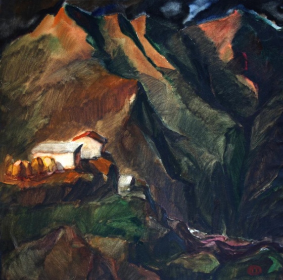 Ольга ПОРХАЙЛО. Последние лучи. Из серии «Северная Осетия». Бумага, акварель. 1981. Курганский областной художественный музей им. Г.А. Травникова.