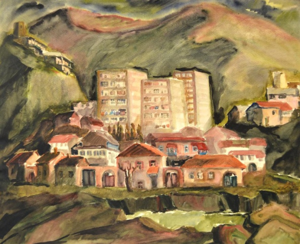 Ольга ПОРХАЙЛО. Горное село. Из серии «Северная Осетия». Бумага, акварель. 1980-е. Картинная галерея г. Красноармейск (Московская область).