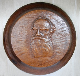 Известный осетинский скульптор Александр Дзантиев (1900-1978), автор памятников Коста Хетагурову во Владикавказе (парк культуры) и в Беслане (поселок БМК), создал в 1935 г. барельеф Льва Толстого, на обороте отцовской деревянной тарелки (на фото).