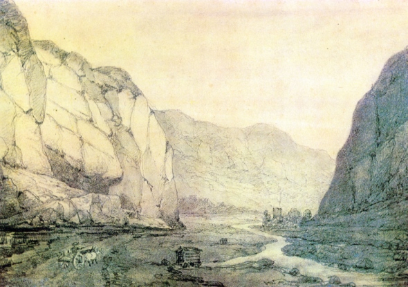 Михаил ЛЕРМОНТОВ. Дарьяльское ущелье. Бумага, итальянский карандаш. 1837. Государственный Лермонтовский музей-заповедник «Тарханы».
