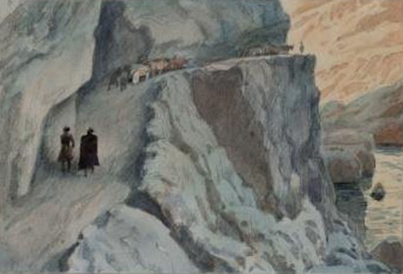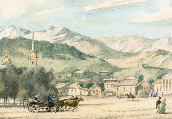 Анатолий ИТКИН. Владикавказ. Иллюстрация к роману М.Ю. Лермонтова «Герой нашего времени». Бумага, акварель, карандаш графитный. 2014. Государственный музей истории российской литературы имени В.И. Даля.