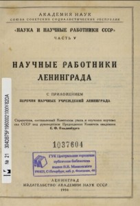 В 1934 г. был издан справочник «Научные работники Ленинграда», составленный Комитетом учета и изучения научных сил СССР под руководством академика С.Ф. Ольденбурга.