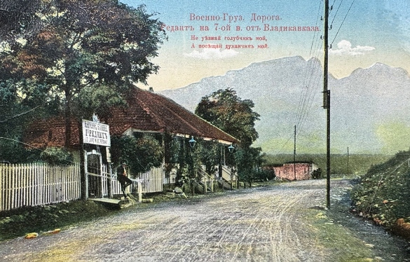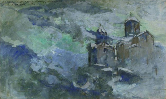 «Из Владикавказа я поехал по Военно-Грузинской дороге на станцию Казбек. Дорога шла по равнине, а впереди были видны громады гор. Они высоко поднимались над долиной. Потом обступили громадными глыбами камня, шли по обе стороны дороги», – очередная запись в дневнике художника.