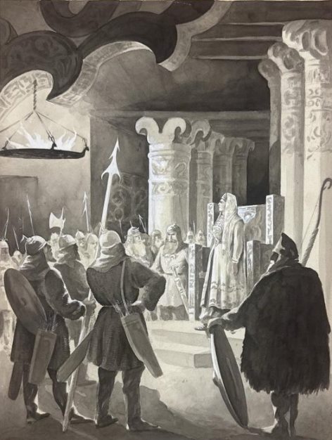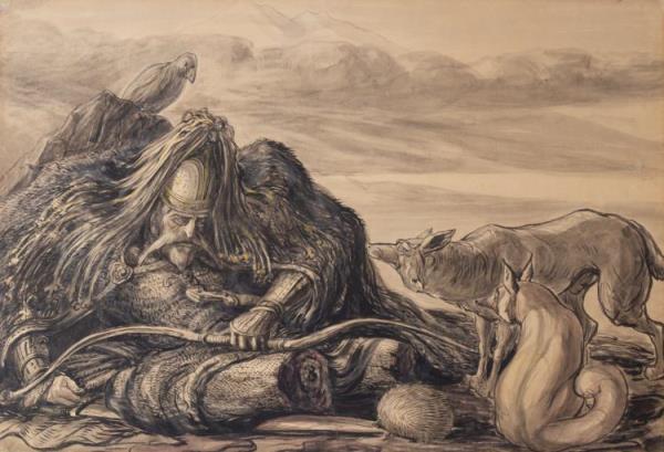 Аслан-Гирей ХОХОВ. Сатана дает совет нартам. 1930-е. Национальный музей РСО-Алания.